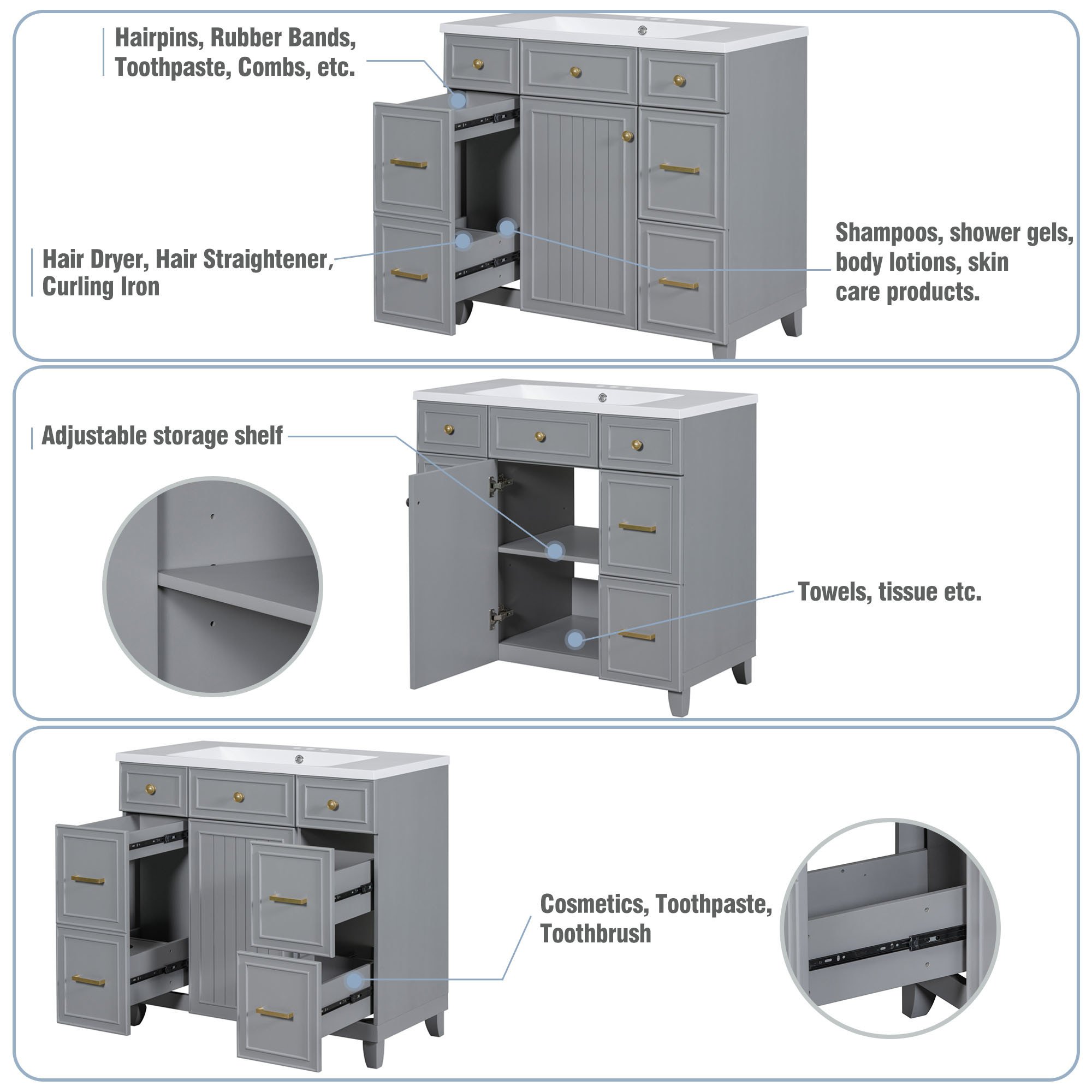 Grey 36" Transitional Bathroom Vanity with Single SinkIntroducing our exquisite and versatile grey bathroom cabinet that combines functionality with timeless elegance. With its spacious storage capacity, you can effortlessly organize all your bathroom essentials, ensuring a clutter-free space.Experience the perfect blend of classic style and modern functionality with our green bathroom cabinet. Upgrade your space and enjoy the convenience and beauty it brings to your daily routine.
