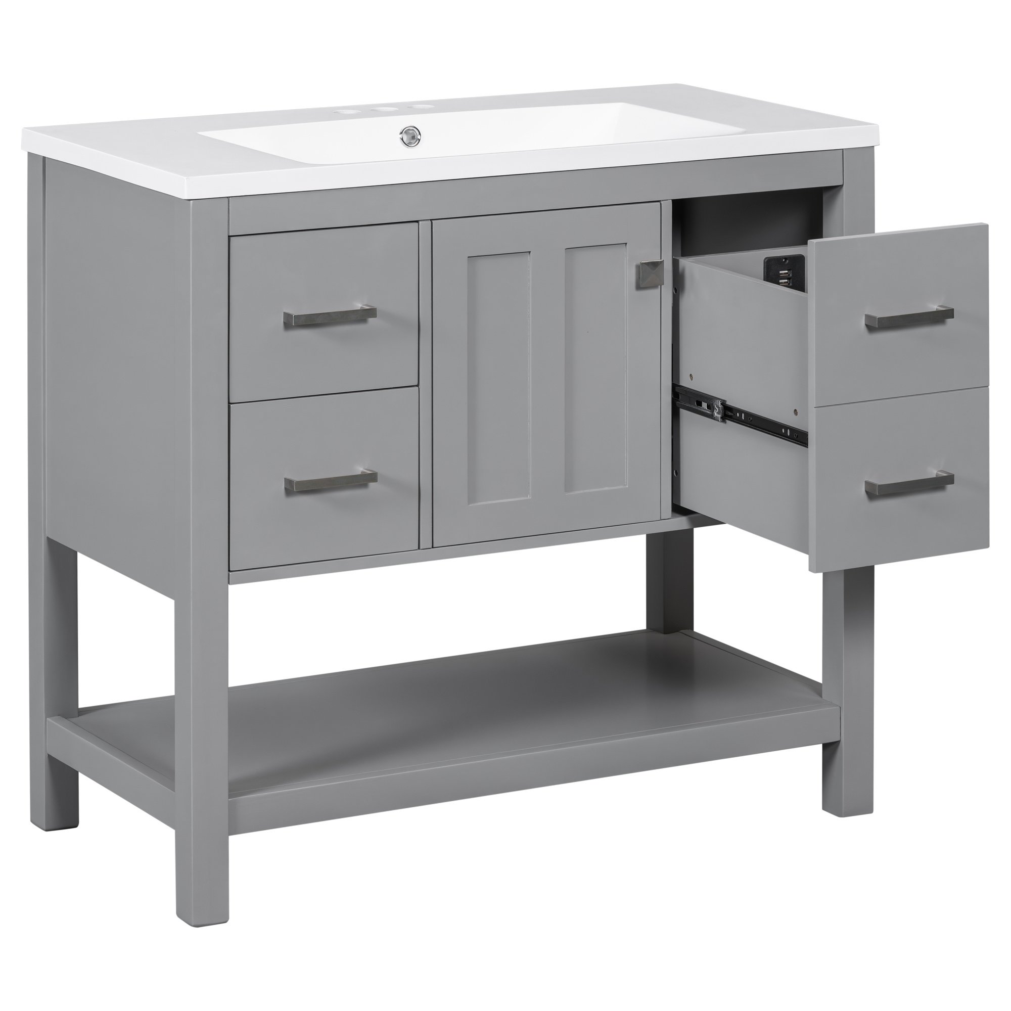 36" Gray Modern Bathroom Vanity with USBUpgrade your bathroom storage with this spacious and stylish bathroom cabinet. Its versatile storage options, premium materials, and elegant design will enhance the functionality and aesthetics of your bathroom. Order now and experience the convenience and elegance it brings!