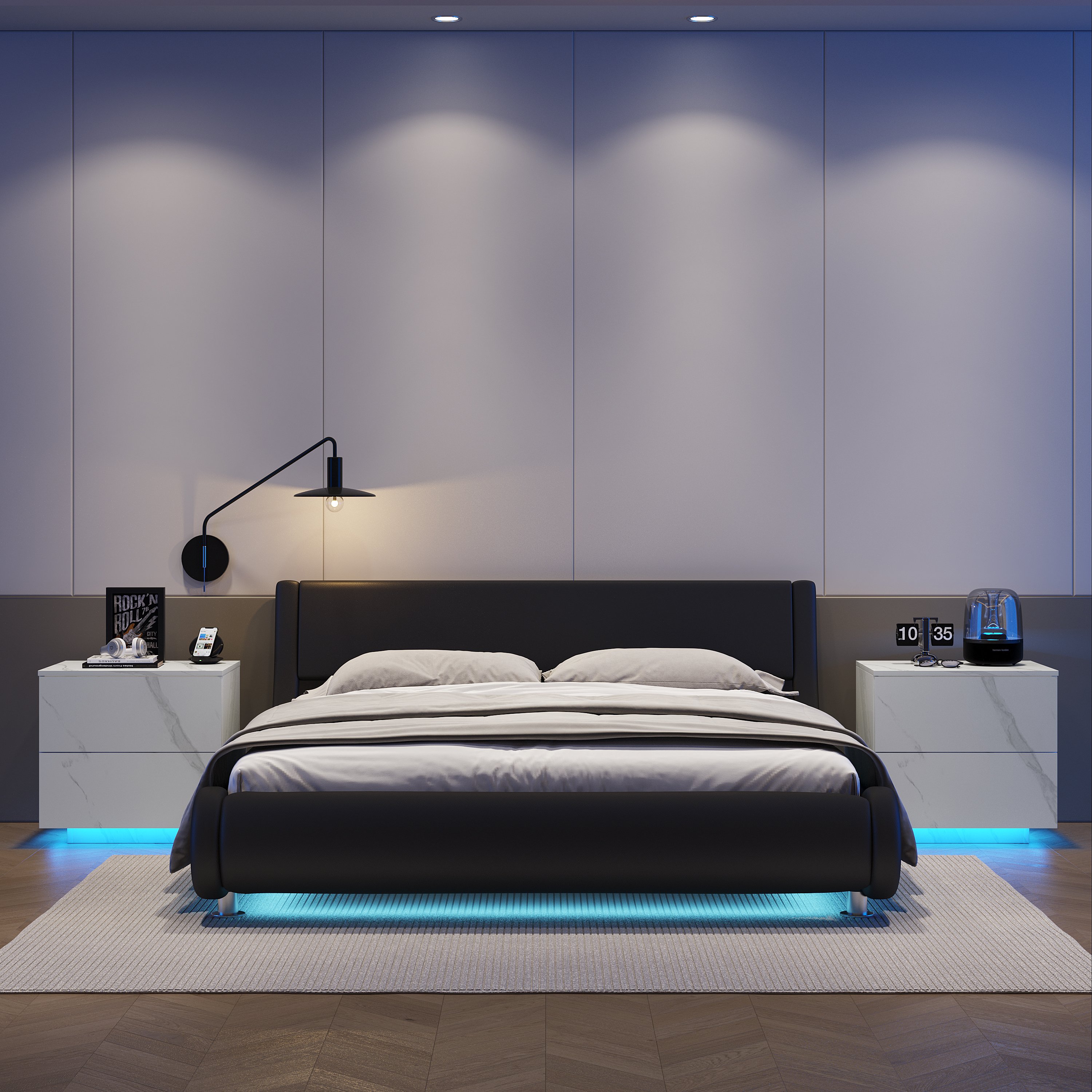 Nightstand with LED Strip Lights20 changeable colors reflect beautifully with the marbling finish, and you will always find your lovest light to raise bedroom vibes. Use this led night stand as a nightlight, turn on the RGB lights by the wireless remote.