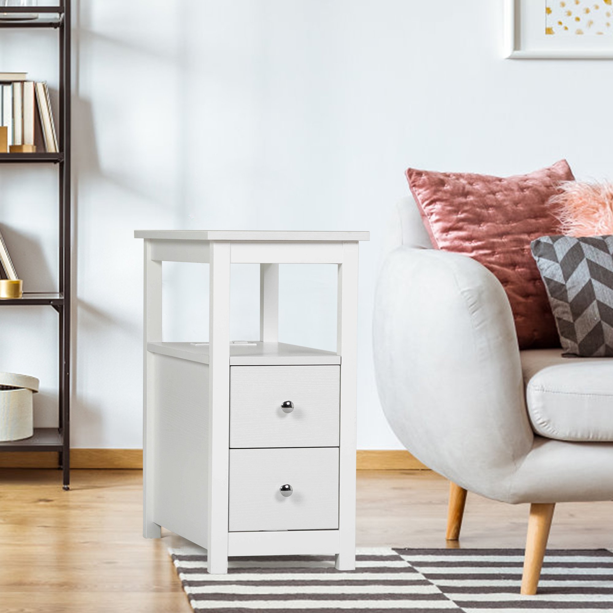 Home > Transitional Nightstand with USB Charging Station, Wooden End Table Bedside Table, 2-Drawer Home&Kitchen Storage Cabinet