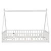 Home > Twin Tent-shaped Floor Bed, with Guardrails, Slats, Door ,White