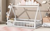 Twin Tent-shaped Floor Bed, with Guardrails, Slats, Door ,White